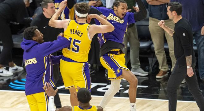 压哨绝杀!湖人球员疯狂地冲向里夫斯,明尼苏达的主场陷入一片死寂。